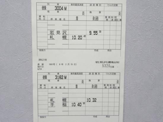 岩見沢(便乗3004M)札幌(便乗3162M)手稲(便乗158M)稲穂(臨回気 回9535D)岩見沢(臨回気 回9535D)旭川(便乗2024M)岩見沢
