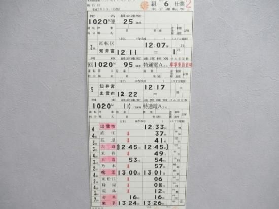 運転区(便1020M)知井宮(回1020M)出雲市(1020M)米子