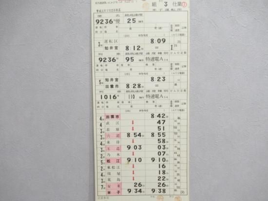 運転区(便9236M)知井宮(9236M)出雲市(1016M)米子